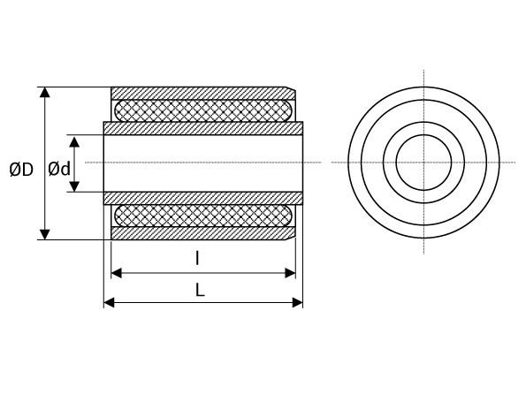 Buchsen oder auch Gelenkblöcke genannt sind Gummi-Metall-Elemente, die im Gegensatz zu den bekannten Gummifedern- bzw. Schwingelementen überall dort eingesetzt werden, wo es nicht auf eigentliche Federarbeit ankommt, sondern wo nur relativ kleine Verschiebungen oder Winkelbewegungen von Maschinenteilen verschleissfrei beherrscht werden müssen, ohne dass die Rückstellkräfte infolge der Auslenkung eine besondere Rolle spielen. Durch Einbau eines elastischen, die Bewegungen aufnehmenden Gummikörpers zwischen die wechselnd gegenläufigen Teile ergibt sich ein wartungsfreies Gelenk und es kann ein Trockenlaufen, eine Reibkorrosion sowie die damit verbundene Vergrösserung des Lagerspieles von Lagerstellen vermieden werden, die auf Grund von nicht fortlaufenden rotierenden Bewegungen nur mangelhaft geschmiert werden. In unserem Online Shop finden Sie verschiedenste Abmessungen mit unterschiedlichsten Belastbarkeiten, bei speziellen Abmessungen senden Sie uns Ihre Anfrage!