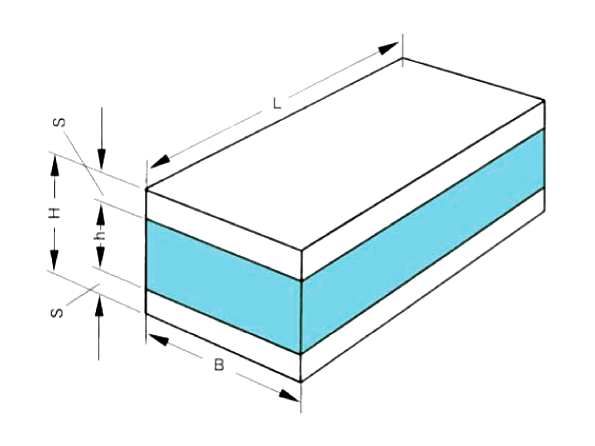Gummi-Metall-Schienen mit beidseitiger Metallplatte zur elastischen Lagerung von schweren Maschinen, Rüttel- oder Vibrationsmaschinen.
