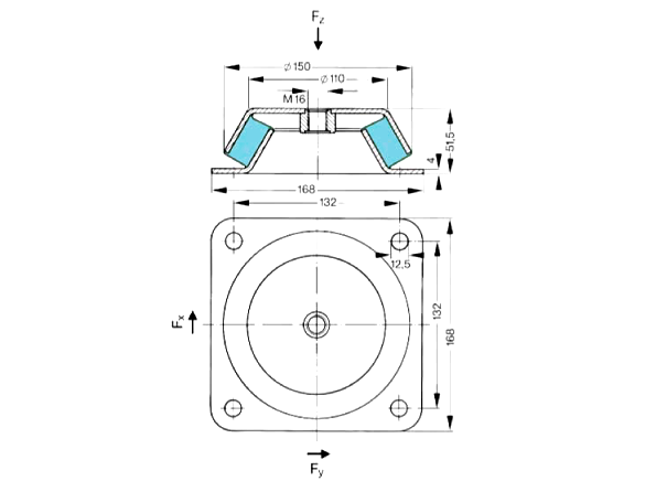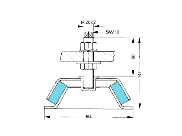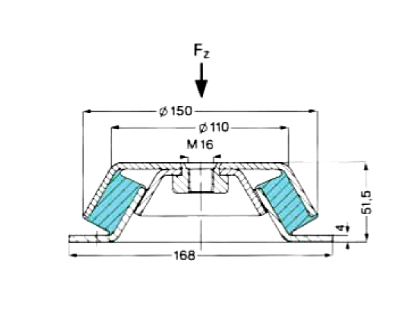 Megi-Maschinenfüsse, bewährte universell einsetzbare Elemente für die elastische Lagerung von Maschinen.