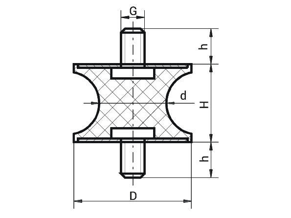 Die taillierten Puffer Typ A/F (beidseitiges Aussengewinde) sind Verbundkörper aus Gummi und Metallplatten und werden als Schwingungsisolationen im körperschalldämmenden Bereich eingesetzt. Die taillierte Formgebung ist vor allem für hohe Druckkräfte geeignet.