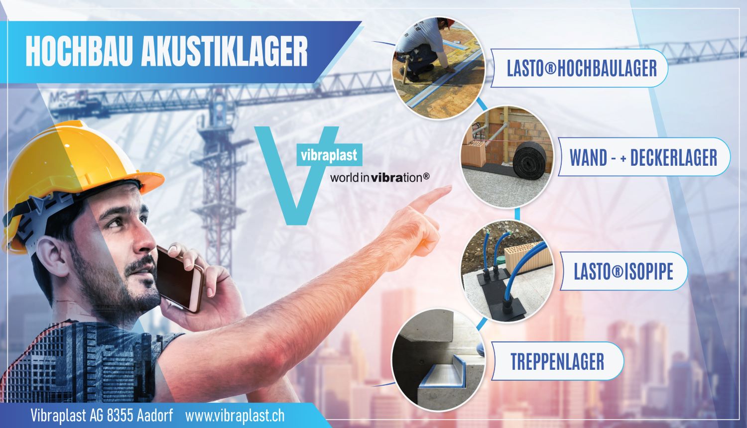 Als schweizweit tätiges Unternehmen beliefern und unterstützen wir unsere Kunden mit bewährten Lösungen in den Bereichen Lärmschutz, Schwingungsisolation, Schaumstofftechnik sowie der Elastomer- und Kunstofftechnik.