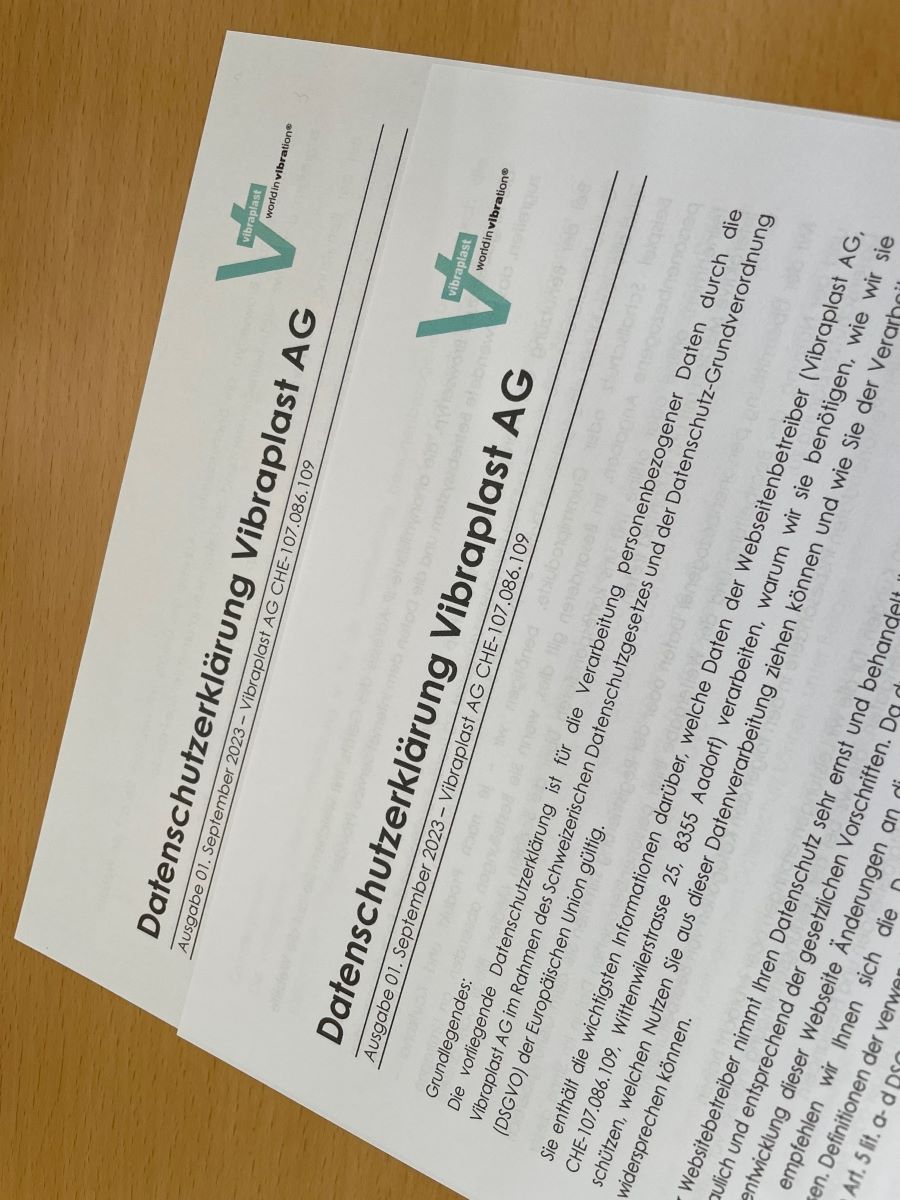 Wir schätzen Ihr Vertrauen in unsere Dienste und versichern Ihnen, dass der Schutz Ihrer Daten für uns oberste Priorität hat. Wenn Sie weitere Fragen oder Bedenken haben, zögern Sie bitte nicht, sich an unser Datenschutzteam unter urs.dutly@vibraplast.ch zu wenden.