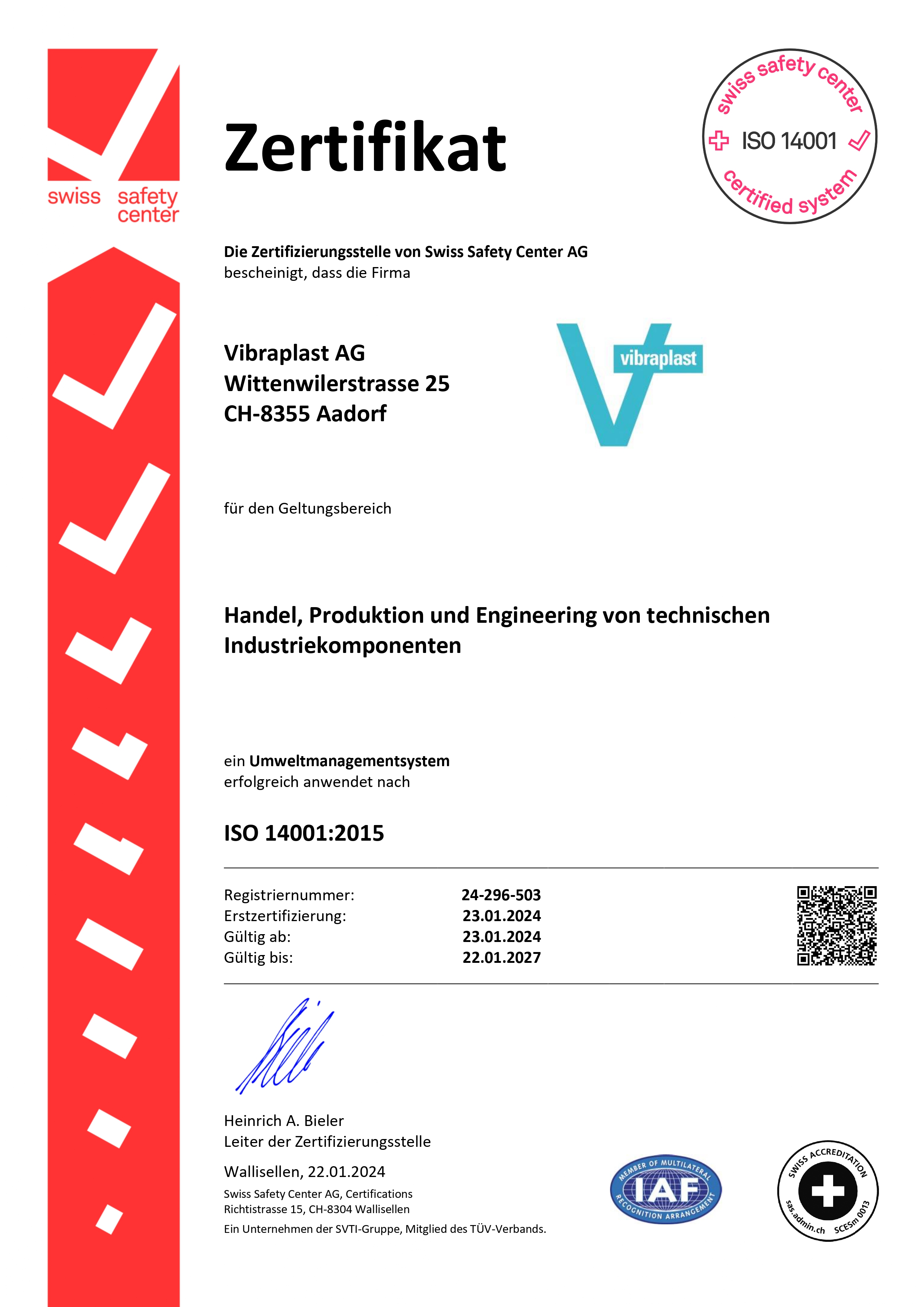 ISO 14001 Zertifizierung der Vibraplast AG