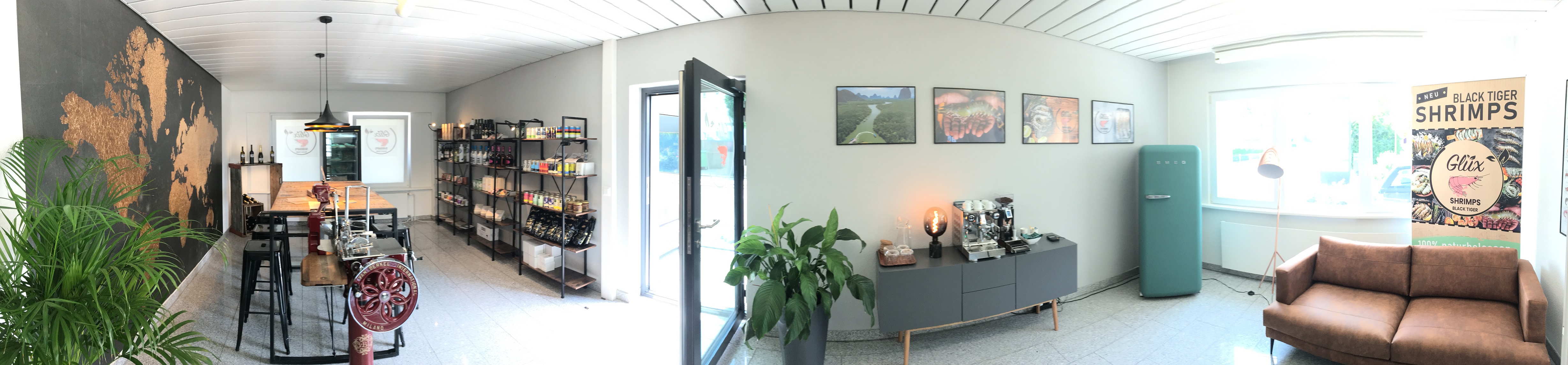 Nicht zu übersehen ist ein Automat bei der Eingangstüre. Es handelt sich dabei um den ersten Tiefkühl-Shrimps-Automaten in der Schweiz. Die exklusiven Shrimps als Endprodukte sind in vier verschiedenen Verarbeitungsformen (roh, mit / ohne Kopf / Schwanz) erhältlich und sind zu jeder Tages- und Nachtzeit verfügbar. Dank Direktverkauf erst noch zu Produzentenpreisen.