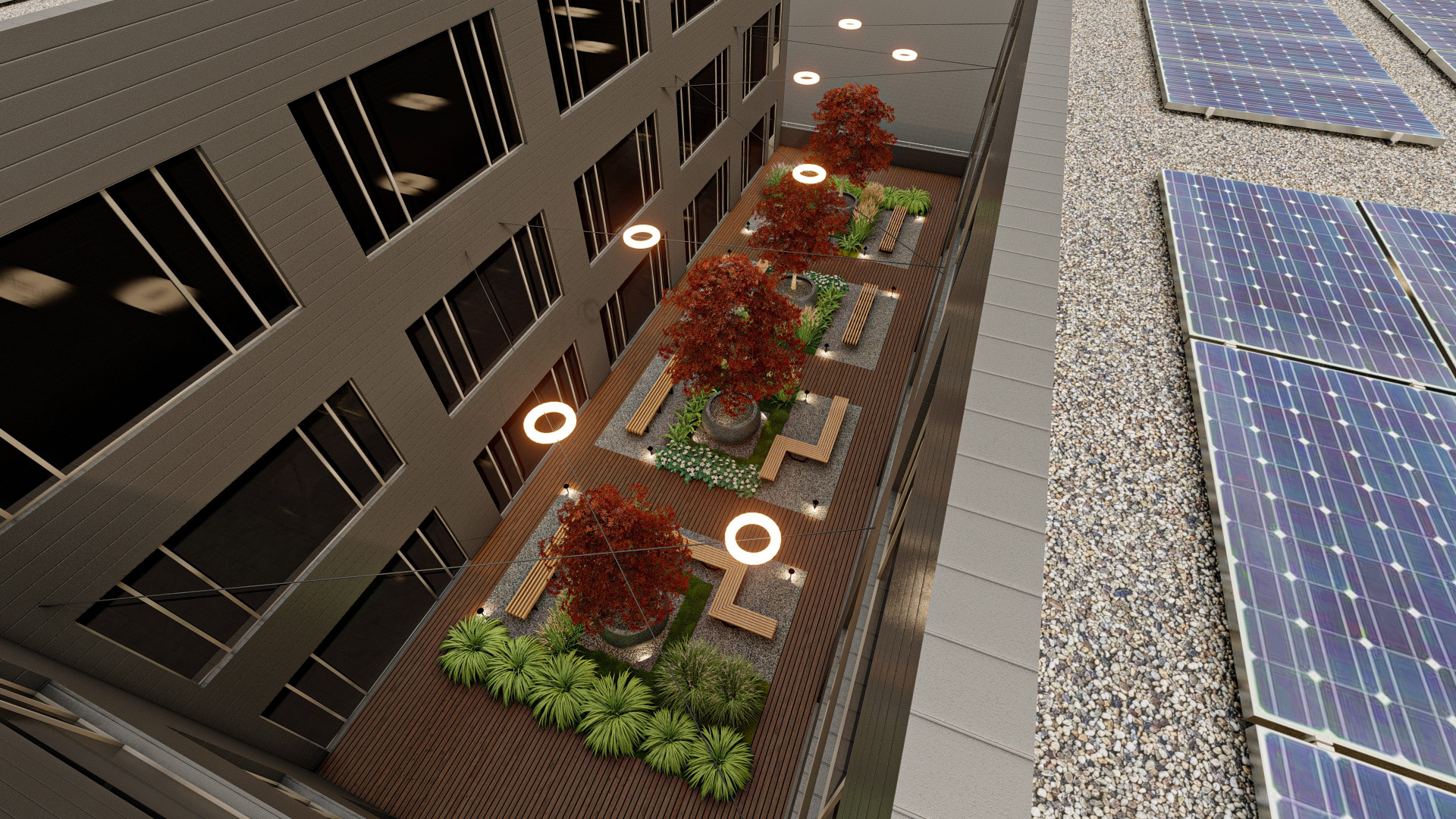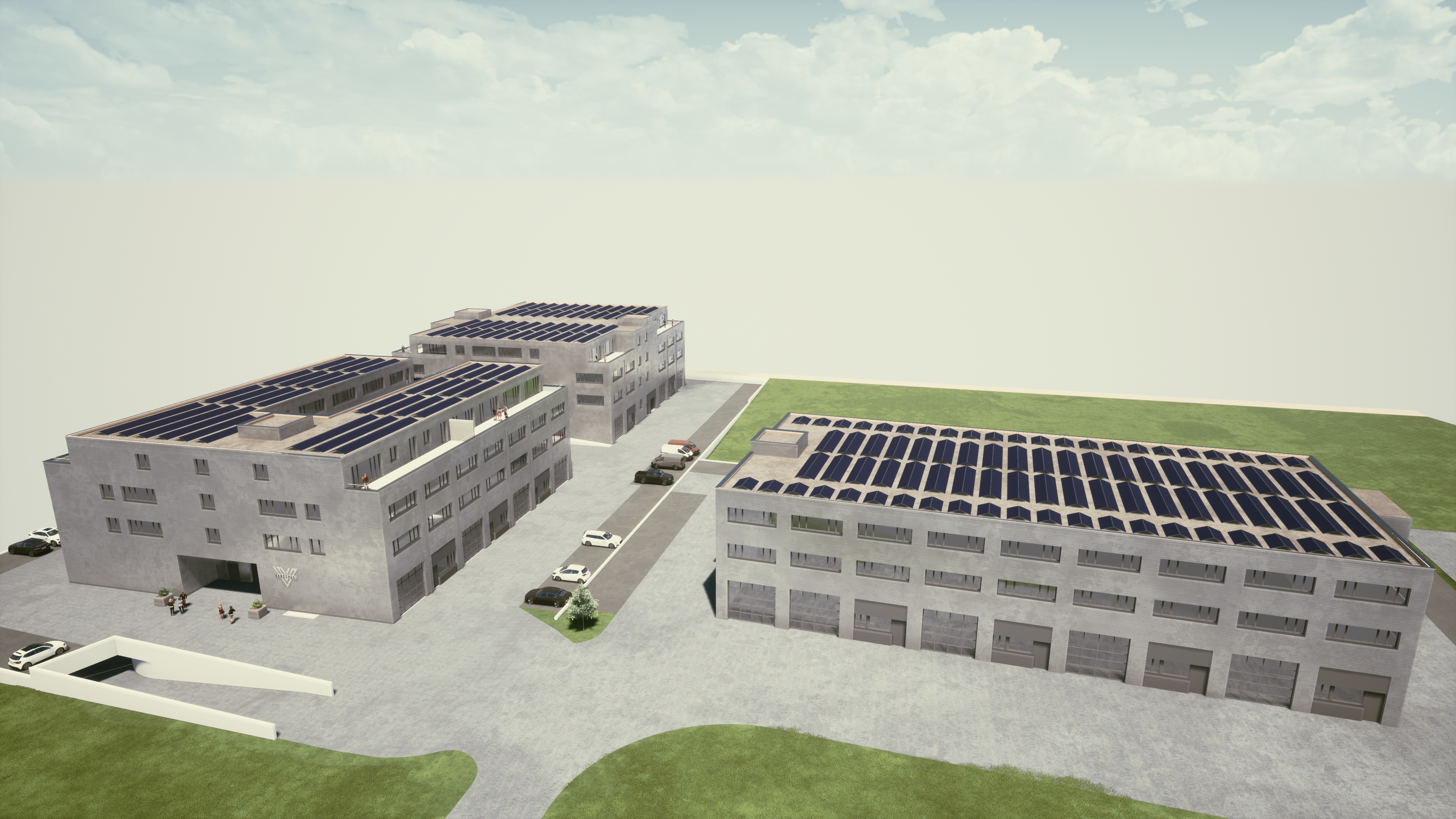 Die gesamte Dachfläche des Industrie- und Gewerbeparks workspace I II und III werden mit Photovoltaianlagen ausgerüstet.
