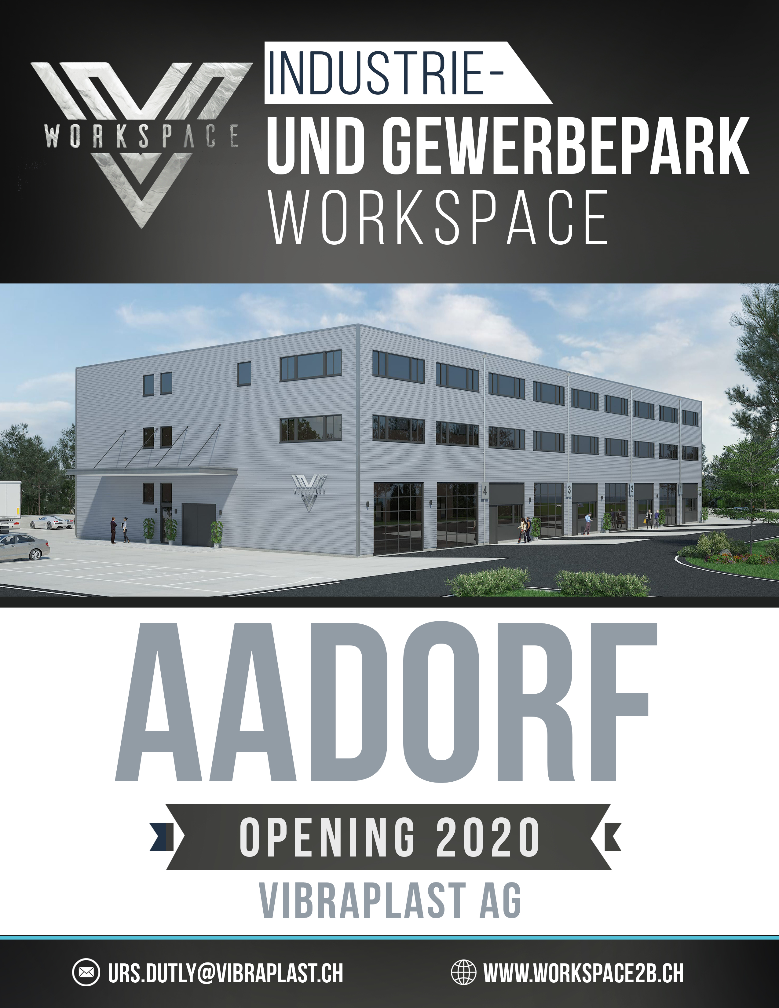 2019 entsteht in Aadorf im Industriegebiet Vorheide (beim Aldi) der Gewerbepark "V-Workspace". Der neue Gewerbepark mit guter verkehrstechnischer Anbindung, nur 2 Min. von der Autobahnausfahrt Matzingen/Aadorf (Autobahn Zürich-St.Gallen) möchte auf die veränderten Rahmenbedingungen im Gewerbe reagieren. Viele KMU’s, Gewerbeunternehmen, Start Ups oder Dienstleister suchen verstärkt flexibel oder im cosharing, coworking nutzbare Flächen bei welchen sie besser auf wechselndes Angebot und Nachfrage reagieren können.Tiefere Kosten hoher Nutzen! Die flex spaces lassen sich individuell an die Nutzerbedürfnisse anpassen. Sie bieten die Möglichkeit, Logistik-,Lager- oder Produktionsflächen mit Büros zu kombinieren. Die verschiedenen Flächenarten - und Größen ermöglichen nicht nur unterschiedliche Nutzungen, sondern auch die Flexibilität, die Flächen schnell an veränderte Bedürfnisse anzupassen. Somit ist der Workspace Gewerbepark insbesondere für Start-ups sowie für kleine und mittlere Gewerbebetriebe attraktiv, die diese Flexibilität als Teil ihrer Geschäftsstrategie benötigen. Der Workspace Gewerbepark hebt sich von bisherigen Gewerbeparks ab, in dem er auf zukünftige Rahmenbedingungen wie stärkere Volatilität und verkürzten Zyklen flexibel eingehen kann. Im Workspace finden Sie passgenaue Mietflächen und nutzen die Synergie-Effekte mit bereits bestehenden Mietern oder bereits vorhandener Infrastruktur wie Stapler, Anpassrampen, Teleskophebebühnen etc. Durch die breite Zielgruppenansprache möchten wir eine möglichst buntgemischte Nutzerstruktur erhalten. (Handelsfirmen, Handwerker, Verkaufslokalitäten, Start-Up Unternehmen, Praxis mit Behandlungsräumen, Fitnessstudio, Self-Storage, coworking Arbeitsplätze, Vereinslokal, Joga, Pop Up Stores ecc.)