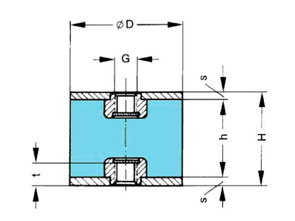 Type C round buffers (internal thread on both sides) are composite bodies made of rubber and metal sheets and are used for vibration insulation and structure-borne sound insulation. They effectively reduce the transmission of mechanical and/or acoustic vibrations. The are available from our online shop in different sizes.